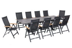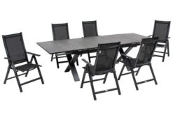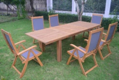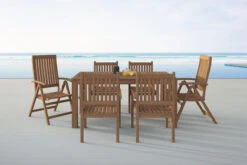 OUTFLEXX Esstischgarnitur, Natur, FSC-Akazienholz, Tisch 160 X 90 Cm, 4 Stühle, 2 Klappsessel