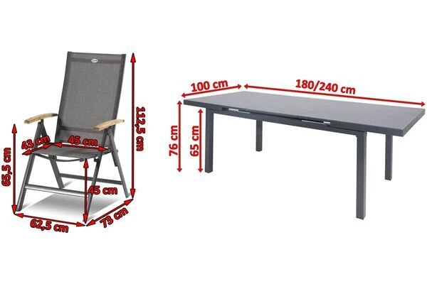 Die Multipositionssessel bestechen durch ihre schlichte Optik mit dem pulverbeschichteten Aluminiumrahmen in einem modernen Anthrazit in Kombination mit dem ebenfalls anthrazitfarbenen Textilen-Gewebe. Ergänzt wird dieses zeitlose Design durch FSC-zertifizierte Teakholz-Armlehnen. Auch funktional überzeugen die bequemen Gartensessel: Die Rückenlehne lässt sich kinderleicht mehrfach verstellen und bietet damit einen hervorragenden Sitzkomfort. Dank des pulverbeschichteten Aluminiumgestells sind die Sessel zudem leicht und einfach zu transportieren. Je nach Bedarf können die Hochlehner schnell und einfach zusammengeklappt und platzsparend verstaut werden.