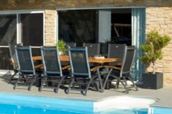 Hartman Esstischgarnitur mit Sondermodell Yasmani Esstisch aus Alu/Teak und 8 Multipositionssessel aus der Serie „Primo „