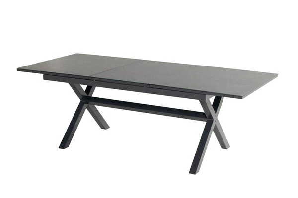 Das gekreuzte Gestell ist gefertigt aus pulverbeschichtetem Aluminium in der Farbe Xerix (Anthrazit) und wird optisch perfekt durch die Glaskeramik-Tischplatte, ebenfalls in der Farbe Xerix ergänzt. Die Maße von ca. 160 x 100 x 76 cm sorgen dafür, dass stets ausreichend Ablagefläche zur Verfügung steht. Bei Bedarf kann der Tisch auf eine Länge von ca. 220 cm ausgezogen werden, so finden bequem auch große Runden genügend Platz in Ihrem Garten. Dank der Ausziehfunktion hebt sich dieses Modell von den üblichen Tischen der Xanadu Serie ab – den Ausziehtisch erhalten Sie exklusiv bei uns.