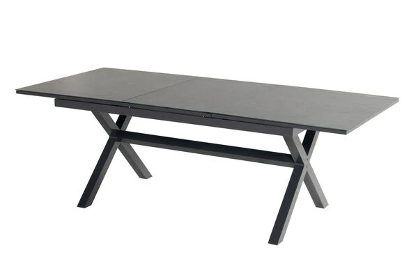 Das gekreuzte Gestell ist gefertigt aus pulverbeschichtetem Aluminium in der Farbe Xerix (Anthrazit) und wird optisch perfekt durch die Glaskeramik-Tischplatte, ebenfalls in der Farbe Xerix ergänzt. Die Maße von ca. 160 x 100 x 75 cm sorgen dafür, dass stets ausreichend Ablagefläche zur Verfügung steht. Bei Bedarf kann der Tisch auf eine Länge von ca. 220 cm ausgezogen werden, so finden bequem auch große Runden genügend Platz in Ihrem Garten. Dank der Ausziehfunktion hebt sich dieses Modell von den üblichen Tischen der Xanadu Serie ab – den Ausziehtisch erhalten Sie exklusiv bei uns.