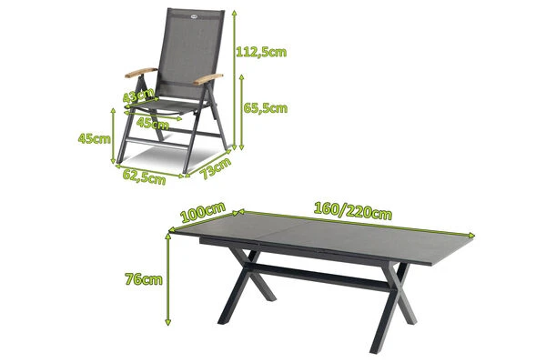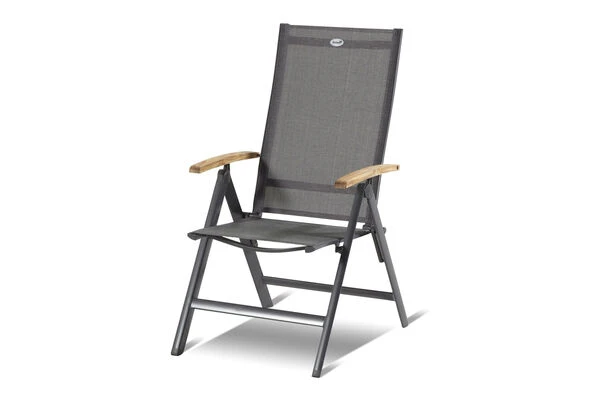 Die Multipositionssessel von Hartman wissen durch die qualitativ hochwertige Verarbeitung und Stabilität zu überzeugen. Die schlichte Optik mit dem pulverbeschichtetem Aluminiumrahmen in xerix, dem passenden Textilen-Gewebe in anthrazit und Armlehnen aus edlem Teak, macht dieses Modell zu einem echten Hingucker. Dank der vorteilhaften Stoffzusammensetzung Textilenbespannung aus 70% Polyvinylchlorid und 30% Polyester profitieren Sie von einer langen Haltbarkeit. Sie werden gar nicht mehr aufstehen wollen, denn das witterungsbeständige Material ist durch seine Flexibilität auch ohne Auflagen sehr bequem. Das Gestell aus robustem Aluminium sorgt für ein geringes Eigengewicht von nur ca. 4,6 kg, sodass sich die Stühle kinderleicht verschieben oder an die gewünschte Position tragen lassen. So können Sie jederzeit flexibel entscheiden, ob Sie lieber in der Sonne oder im Schatten sitzen wollen. Trotz des leichten Gewichts sind die Multipositionssessel äußerst stabil und können mit bis zu 130 kg belastet werden. Ob Sie beim Essen ganz aufrecht sitzen möchten oder sich in der Sonne zurücklehnen wollen, Sie finden dank der 6-fachen Verstellbarkeit immer die richtige Sitzposition. Ebenso schnell und unkompliziert können Sie die Sessel zusammenklappen und platzsparend verstauen.