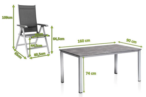 KETTLER Cubic/Basic Plus Esstischgarnitur, silber/anthrazit, Alu/Textilene, ca. 160×90 cm, 4 Multipositionssessel