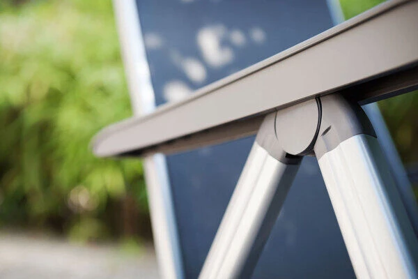 Mit dem Multipositionssessel aus der BasicPlus Serie bequem durch den Sommer. Mittels Rasterschiene lässt sich der Sessel leicht in 4 verschiedene Positionen bringen – so wird der Komfort eines Liegestuhls direkt integriert. Das solide und formschöne Gestell besteht aus edlem, silberfarbenem Aluminium. Die anthrazitfarbene Sitzfläche wird aus wasserdurchlässigem, hochwertigem Outdoorgewebe gefertigt. Die Sitzfläche nimmt kein Wasser auf und trocknet schnell, so können Sie auch nach einem kleinen Regenschauer rasch wieder Platz nehmen. Das luftige Gewebe ist formstabil und trotzdem sehr bequem und zusätzlich UV- und sonnenölbeständig – insgesamt also der perfekte Begleiter in Ihrem Garten. Dank der leichten Materialien und des Klappmechanismus lässt sich der Stuhl leicht zu handhaben – wenn er nicht benötigt wird können Sie ihn platzsparend verstauen.