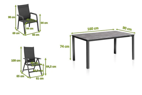 Der rechteckige Tisch für 4-6 Personen bietet Platz für eine ganze Familie. Die anthrazitfarbene Tischplatte besteht aus hochwertig verarbeitetem Kettalit und wird von einem soliden Gestell aus Aluminium in anthrazit getragen. Die positiven Eigenschaften von Aluminium sind zahlreich: Es ist leicht, wetterfest, stabil und elegant. In Kombination mit der Stabilität und der kratzfesten Oberfläche der Kettalit Tischplatte wird aus diesem Möbelstück das Highlight für Ihren Garten. Mit dem Multipositionssessel in der Größe von ca. 65 x 61 x 109 cm aus der BasicPlus Serie bequem durch den Sommer. Mittels Rasterschiene lässt sich der Sessel leicht in 4 verschiedene Positionen bringen – so wird der Komfort eines Liegestuhls direkt integriert. Das solide und formschöne Gestell besteht aus edlem, anthrazitfarbenem Aluminium. Die ebenfalls anthrazitfarbene Sitzfläche wird aus wasserdurchlässigem, hochwertigem Outdoorgewebe gefertigt. Die Sitzfläche nimmt kein Wasser auf und trocknet schnell, so können Sie auch nach einem kleinen Regenschauer rasch wieder Platz nehmen. Das luftige Gewebe ist formstabil und trotzdem sehr bequem und zusätzlich UV- und sonnenölbeständig – insgesamt also der perfekte Begleiter in Ihrem Garten. Dank der leichten Materialien und des Klappmechanismus lässt sich der Stuhl leicht zu handhaben – wenn er nicht benötigt wird können Sie ihn platzsparend verstauen. Die Stapelsessel in der Größe von ca. 69 x 66 x 98 cm sind solide und haben ein formschönes Gestell aus edlem anthrazitfarbenem Aluminium. Die ebenfalls anthrazitfarbene Sitzfläche wird aus wasserdurchlässigem, hochwertigem Outdoorgewebe gefertigt. Die Sitzfläche nimmt kein Wasser auf und trocknet schnell, so können Sie auch nach einem kleinen Regenschauer rasch wieder Platz nehmen. Das luftige Gewebe ist formstabil und trotzdem sehr bequem und zusätzlich UV- und sonnenölbeständig – insgesamt also der perfekte Begleiter in Ihrem Garten. Die Sessel lassen sich aufstapeln – wenn sie nicht benötigt werden können Sie sie platzsparend verstauen.