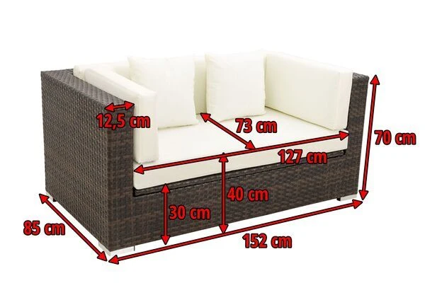 OUTFLEXX 2-Sitzer Sofa, Braun Marmoriert, Polyrattan, 152 X 85 X 70 Cm, Wasserfeste Kissenbox