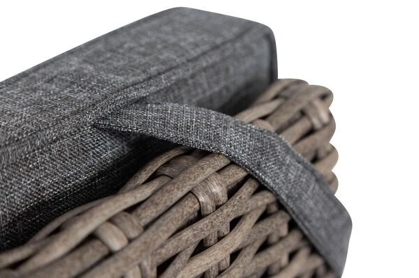 | Stabiles Polyrattan-Geflecht Das halbrunde Polyrattan-Geflecht in der Farbe grau ist besonders stabil, wasserabweisend und wetterfest. | |
