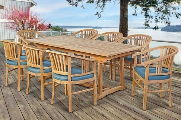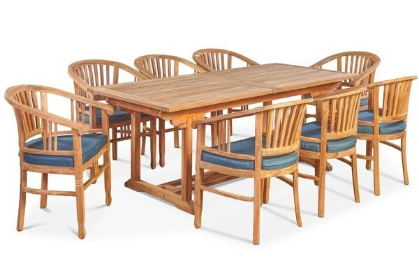 OUTFLEXX® Esstischgarnitur, Teakholz, Ausziehtisch ca. 195/295 x 90 x 75 cm, 8 Armlehnensessel