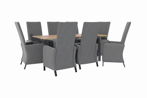 OUTFLEXX® Malaga Sitzgruppe mit Ausziehtisch aus Edelstahl/FSC®-Teakholz und 8 Malaga Sun Sessel aus Aluminium/Sunbrella in der Farbe Flanelle