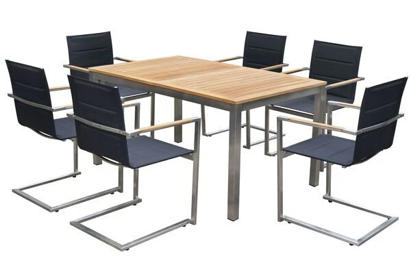 Esstischgarnitur von OUTFLEXX® für 6 Personen aus Teak/Edelstahl