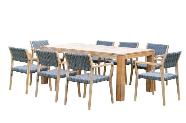 OUTFLEXX® Esstischgarnitur aus FSC®-zertifiziertem Akazienholz für acht Personen