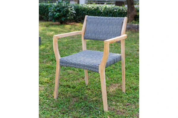 8x OUTFLEXX Armlehnensessel, natur/grau, Akazie/Geflecht, ca. 60 x 55 x 84 cm, stapelbar