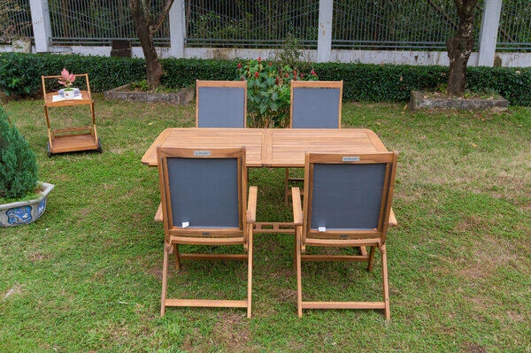 Die passenden Stühle bestehen aus hochwertigem, naturbelassenem FSC-zertifiziertem Akazienholz in Kombination mit Textilene. Die Maße der Klappstühle betragen ca. 60 x 71 x 107,5 cm. Die besondere Bespannung der Rückenlehne und der Sitzfläche mit Textilene bieten einen zusätzlichen Komfort. Zudem ist die Rückenlehne 5-fach verstellbar und bietet Ihnen somit für jede Gelegenheit eine komfortable Sitzeinstellung. Die Stühle lassen sich einfach zusammenklappen und somit bei Bedarf platzsparend verstauen. Akazienholz zeichnet sich durch seine natürliche Optik mit eleganter Maserung, seiner Widerstandsfähigkeit und Robustheit aus.