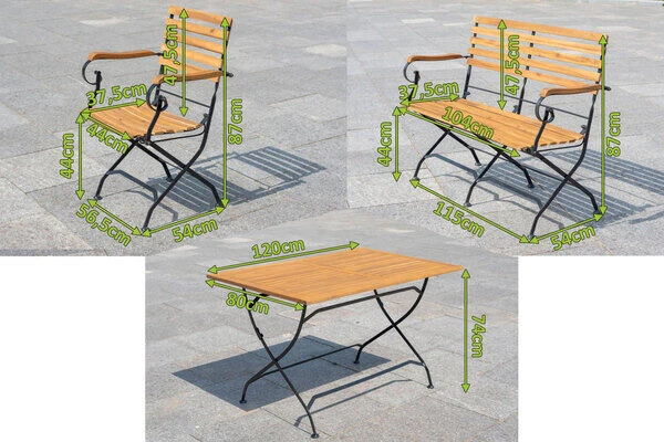 Klassisches Design kombiniert mit hochwertigen Materialien – der Klappstuhl und die Gartenbank sind nicht nur ein Hingucker, sondern darüber hinaus auch noch besonders robust. Dafür sorgt neben dem schwarzen Stahlrahmen die Verwendung von geöltem Akazienholz für Sitzfläche und Rückenlehne, das selbstverständlich FSC-zertifiziert ist.