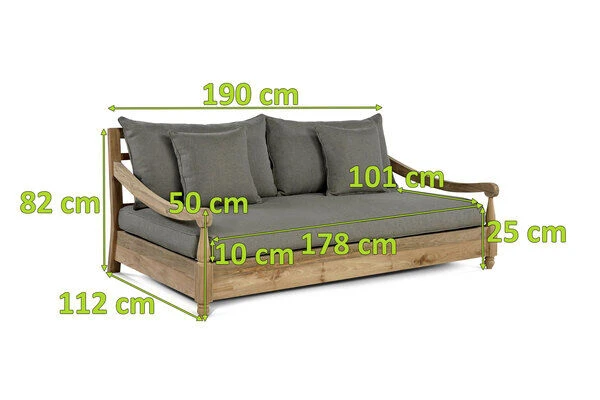 OUTFLEXX Sofa, Natur, Recycled FSC®-Teak, 190x112x82cm 2 Sitzer, Inkl. Kissen, Mit Armlehnen