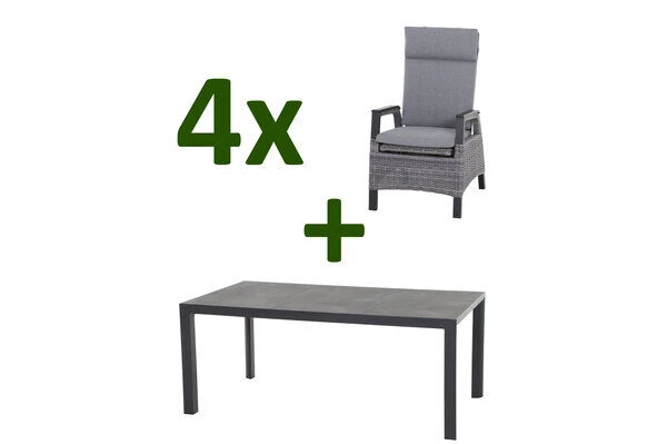 SIENA GARDEN Carlos/Solea Dining Set, anthrazit/blau, Keramik/Gardino®-Geflecht/Alu, ca. 180 x 100 cm, inkl. 4 Diningsessel, stufenlos verstellbar