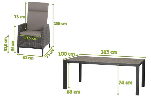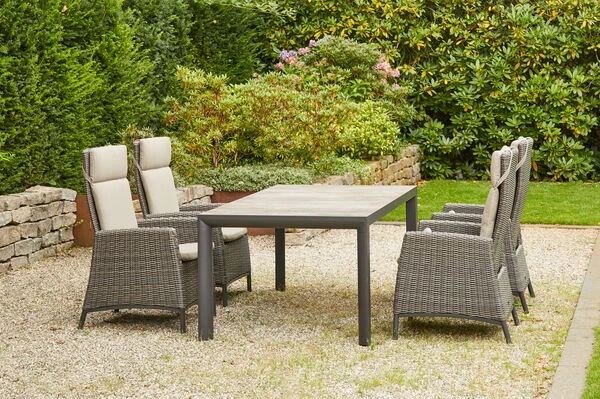 SIENA GARDEN Silva/Amira Dining Set, anthrazit/grau, Alu/Gardino®-Geflecht/Keramik, ca. 183 x 100cm, inkl. 4 Diningsessel, verstellbar