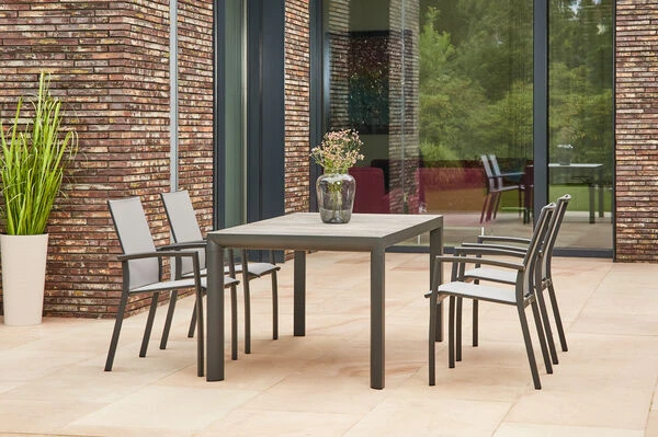SIENA GARDEN Silva/Velia Dining Set, anthrazit/grau, Alu/Ranotex®-Gewebe/Keramik, ca. 160 x 90cm, inkl. 4 Diningsessel